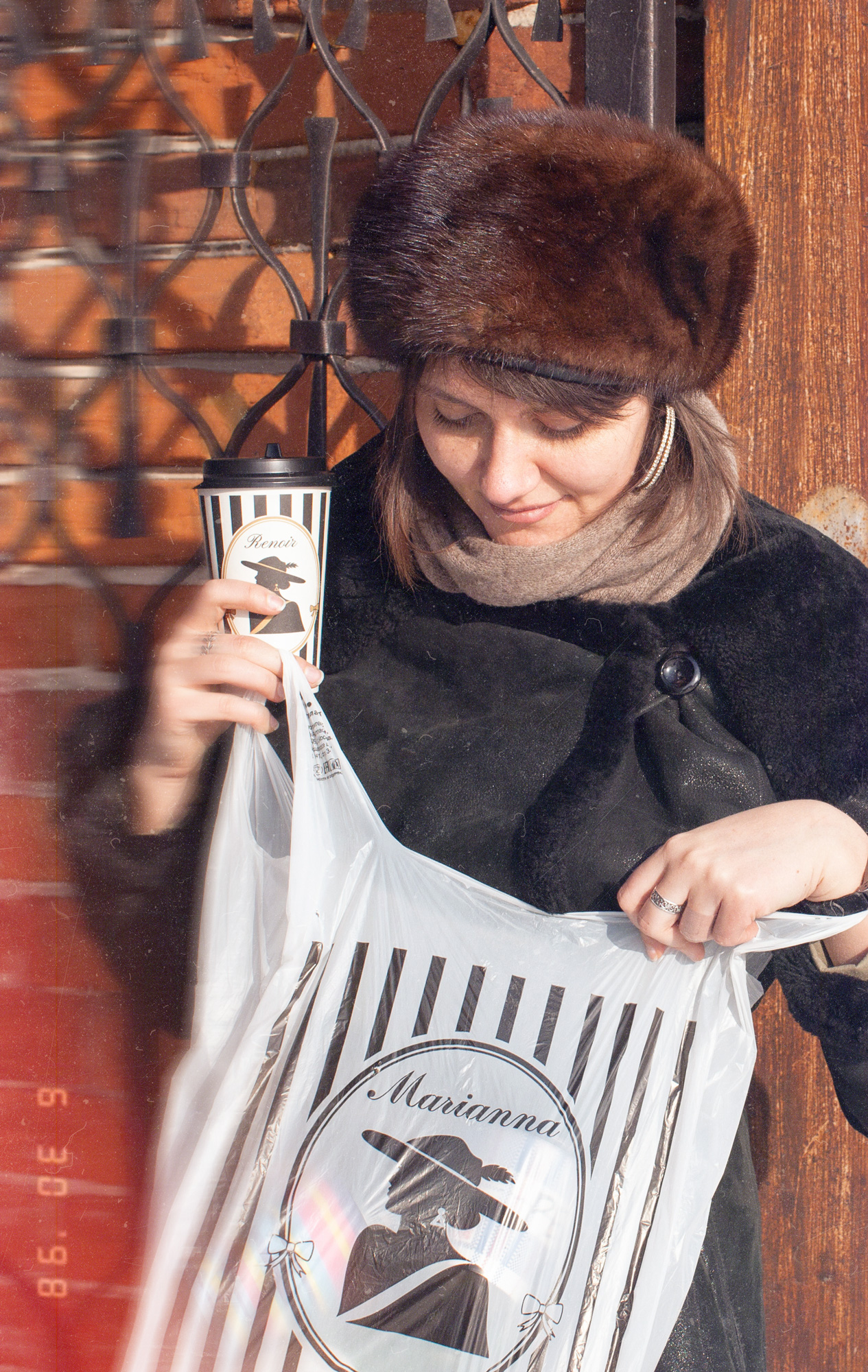 Идея для надписи «Ренуар» на сумке с китайского рынка пришла прямиком из детства — наших воспоминаний о том, как люди подписывали свои сумки, чтобы их не перепутать. Подписывали они прям на месте (рынок, вокзал), отсюда и неровная надпись маркером. На дне всех стаканчиков есть пасхалочки, отсылающие нас к теме… пакетов. «Стакан со стаканами», например. Переворачивайте предметы, иногда интересное можно найти, взглянув под другим углом.